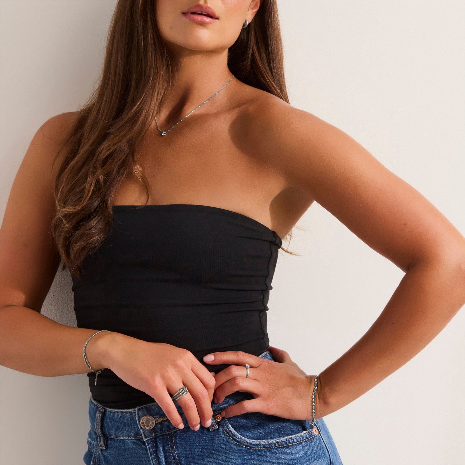 Make it personal with this crystal initial necklace. Featuring a bold block letter encrusted with 9 round-cut crystals, this charm pendant shines with just the right touch of sparkle. Its delicate chain balances the look, making it ideal for everyday layering or solo statement wear.